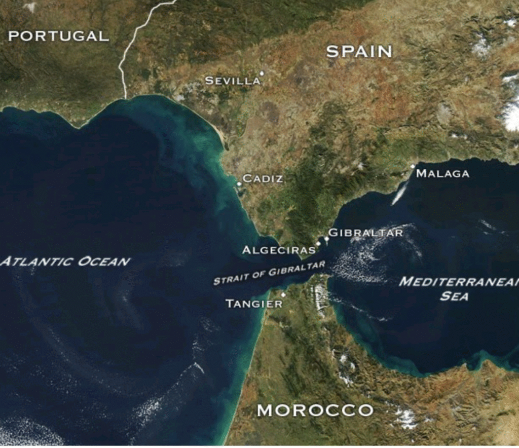 Seperti halnya Andalusia (sekarang Spanyol), Gibraltar telah menjadi pemerintahan tersendiri yang memiliki kedalaman sekitar 300 meter, dan lebar sekitar 14 kilometer pada sisi tersempitnya, merupakan selat yang berada di posisi strategis. Kapal-kapal yang melaju dari Atlantik ke Mediterania dan kebalikannya, harus melewat selat ini. Banyak orang yang melintas dari Eropa ke Afrika dan sebaliknya, melewati selat tersebut.